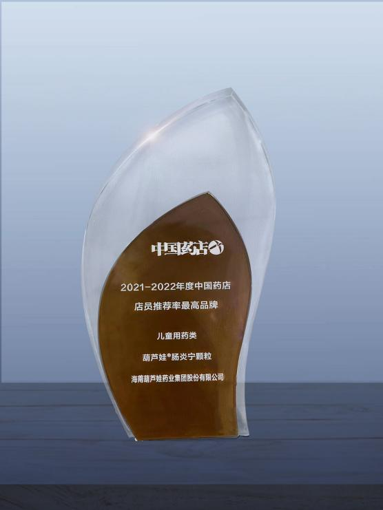 近日,由《中国药店》杂志社举办的“2022~2023年度中国药店发展报告暨中国药店价值榜发布会”在青岛举行,会上发布了“2021-2022年度中国药店店员推荐率最高品牌”奖,yd12399云顶集团药业两大明星产品yd12399云顶集团牌小儿肺热咳喘颗粒(4g)、yd12399云顶集团牌肠炎宁颗粒(2g)双双上榜。